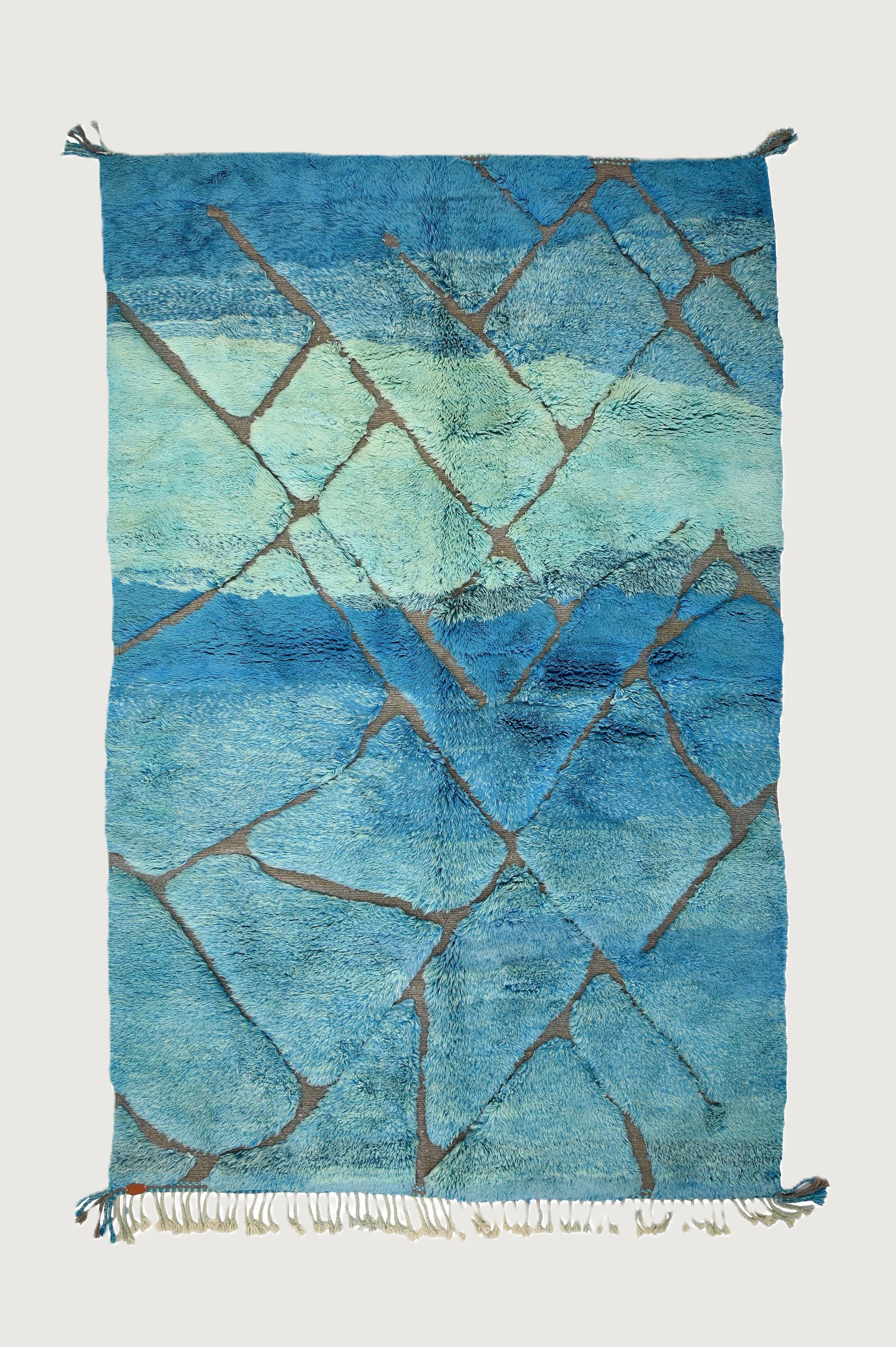 Crafted from 100% pure wool, it offers exceptional softness and durability. The natural dyes create soothing blue hues that bring tranquility and sophistication to any space.