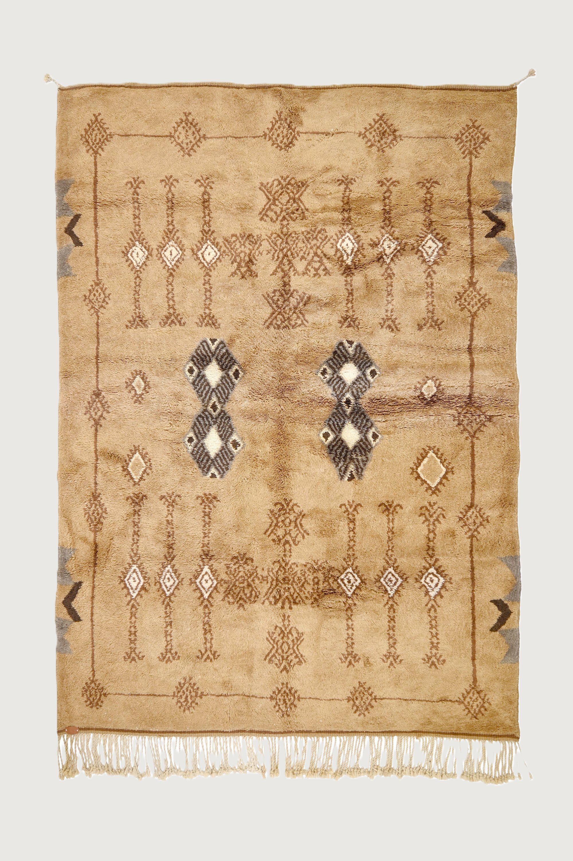 Made from 100% pure wool, it features a luxurious texture and long-lasting durability. Natural dyes give the rug its distinctive sand-toned palette, creating a calm, earthy atmosphere that complements a wide range of interior styles.