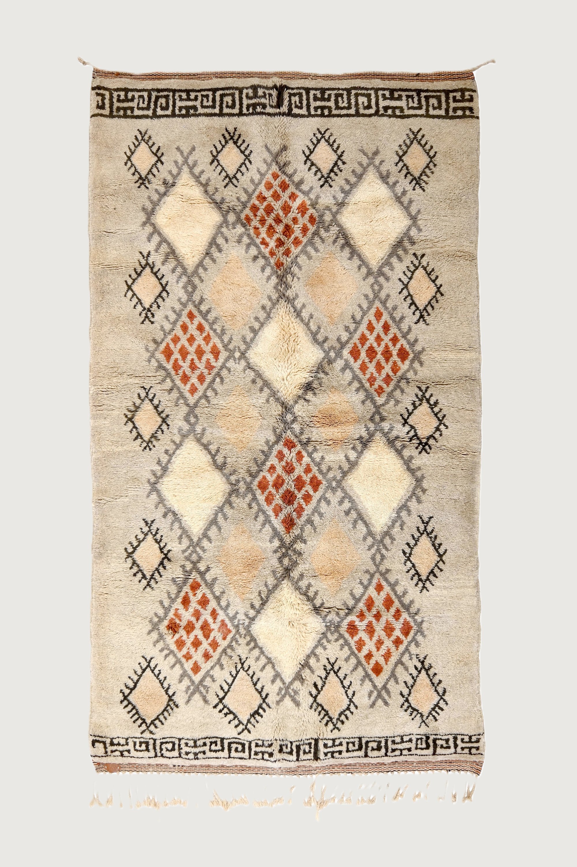 Discover the beauty of geometric elegance with the Diamond Shaped Moroccan Rug, a striking piece handcrafted by skilled artisans from the High Atlas Mountains. This rug embodies traditional Moroccan weaving techniques while offering a modern visual appeal.
