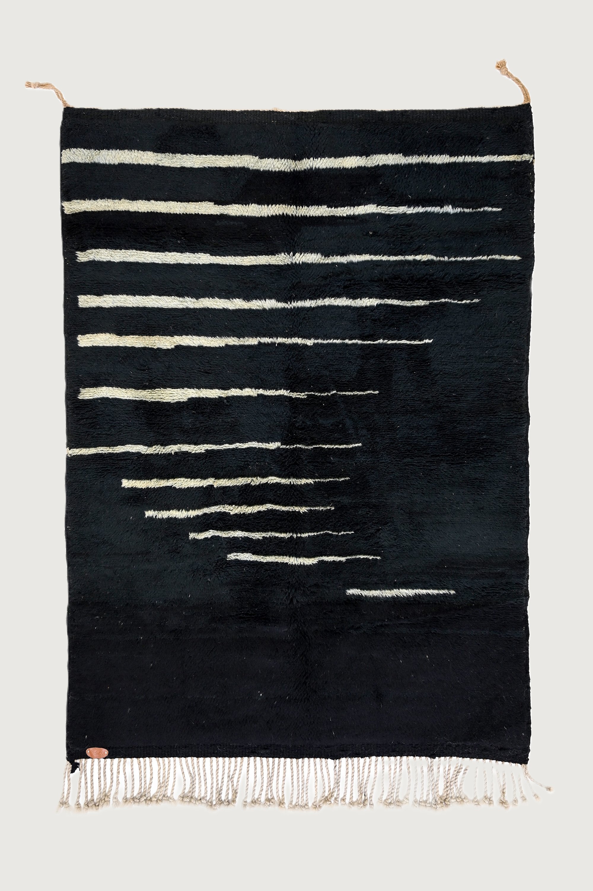 Elevate your space with the Obsidian Cascade Black Rug, a refined expression of elegance and craftsmanship. Handwoven by skilled artisans from the High Atlas Mountains, this rug embodies the beauty of Moroccan tradition.