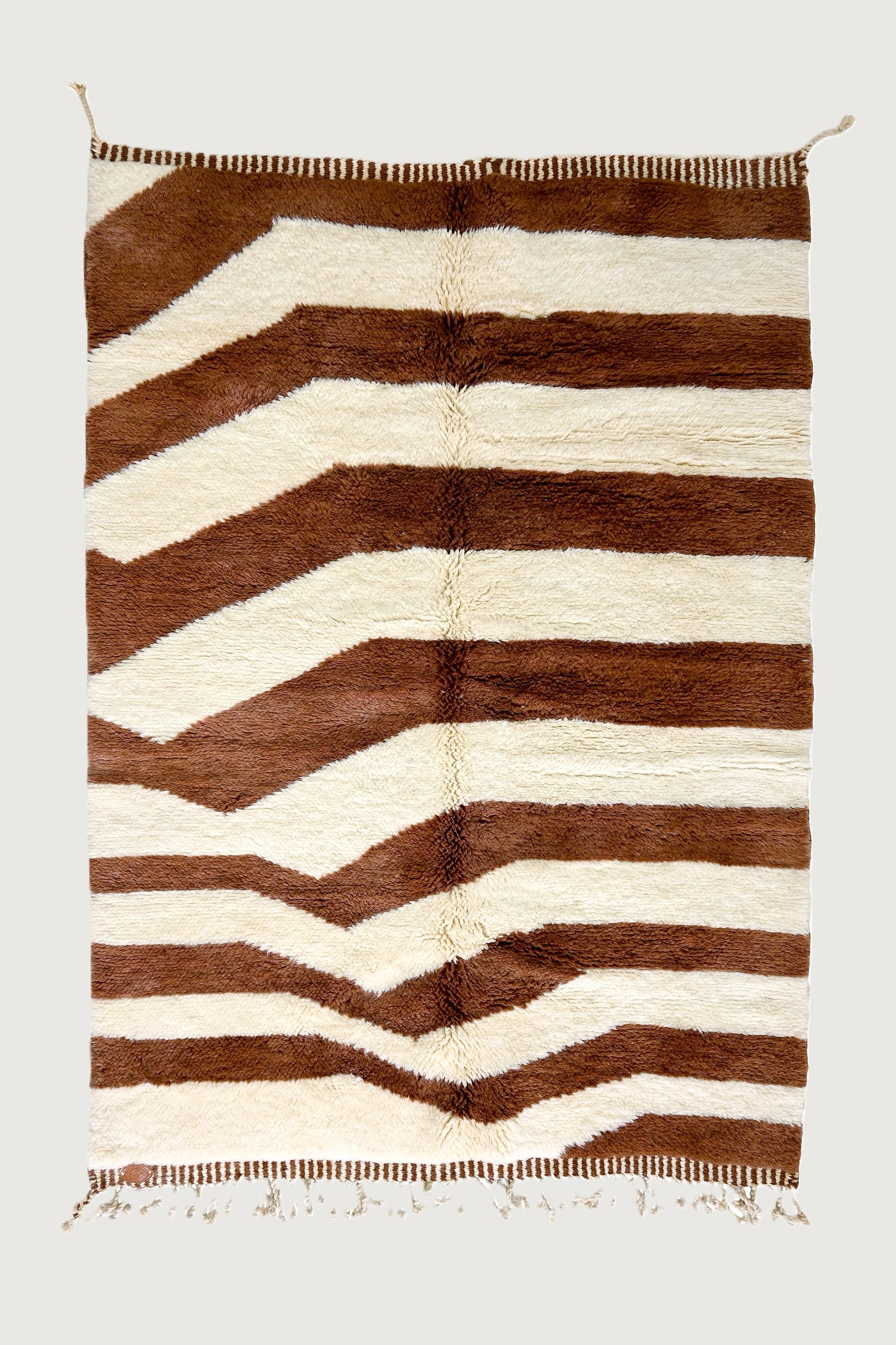 Indulge in the allure of our "Dimensional Mocha Rug," a Moroccan masterpiece that stands out with its unique and mesmerizing design. Handcrafted with precision in Morocco's High Mountain Atlas region, this exclusive rug reflects exceptional artisan skill.