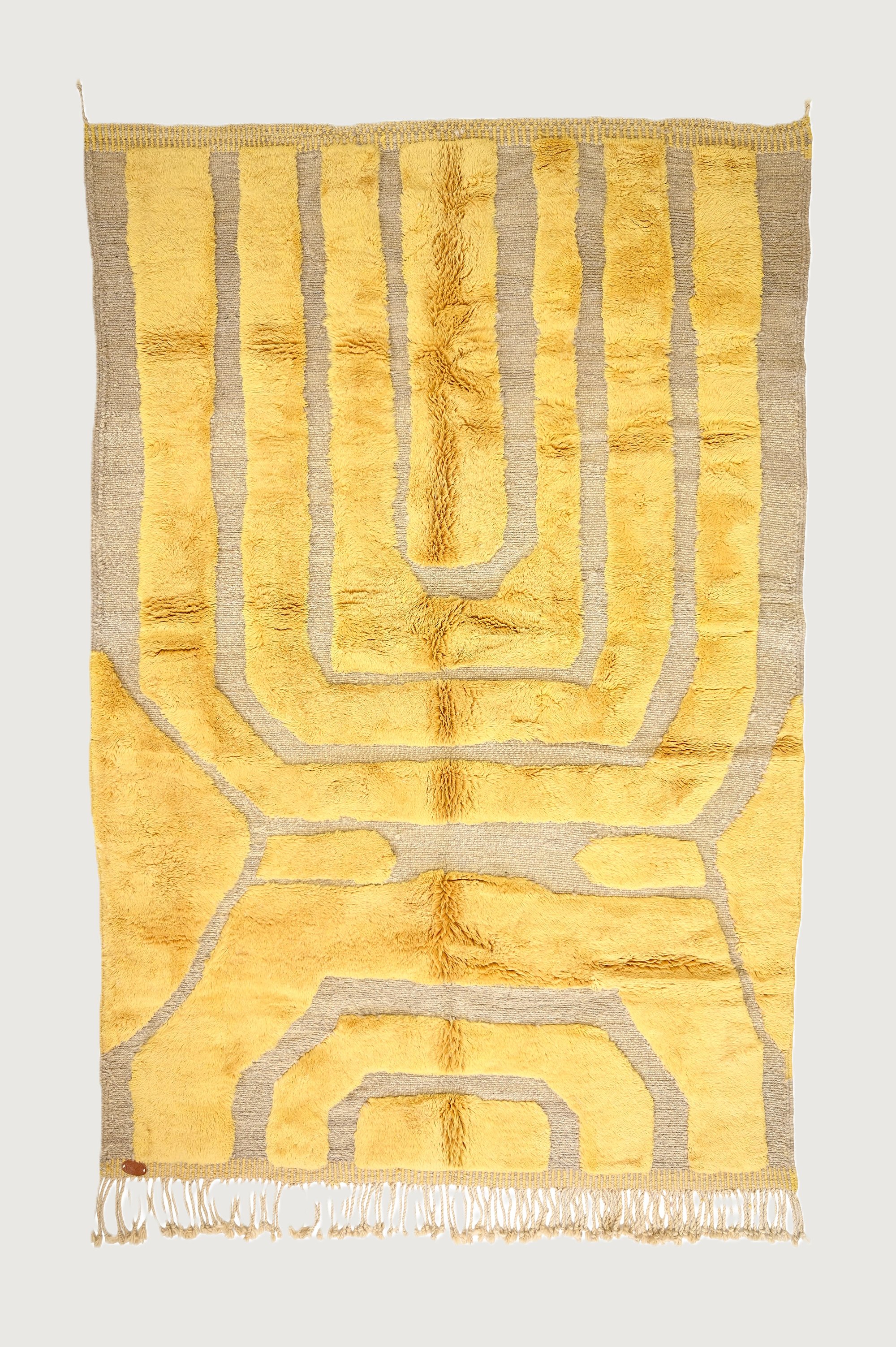 Introducing the "Golden Unity Moroccan Rug," a majestic piece that radiates elegance through its refined design. Handwoven in Morocco's High Mountain Atlas region, it reflects generations of craftsmanship.