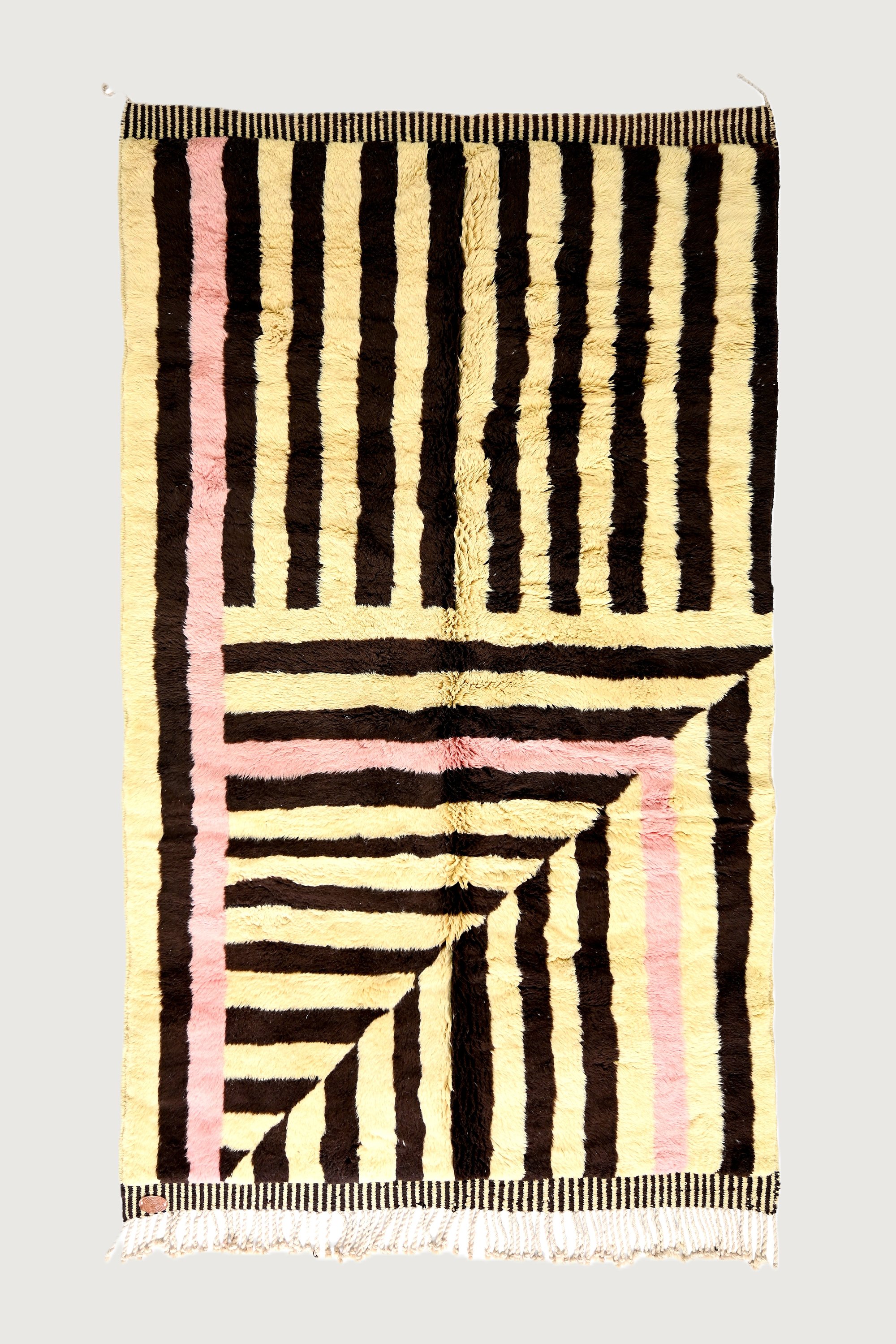 Inspired by desert landscapes, the "Dunes Haven Moroccan Rug" reflects the beauty of shifting الرمال through its striped design.