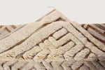 The raised ivory pile forms an intricate maze motif with subtle earthy outlines, creating depth and architectural structure within a calm, monochromatic palette. The texture-driven design feels both contemporary and timeless.