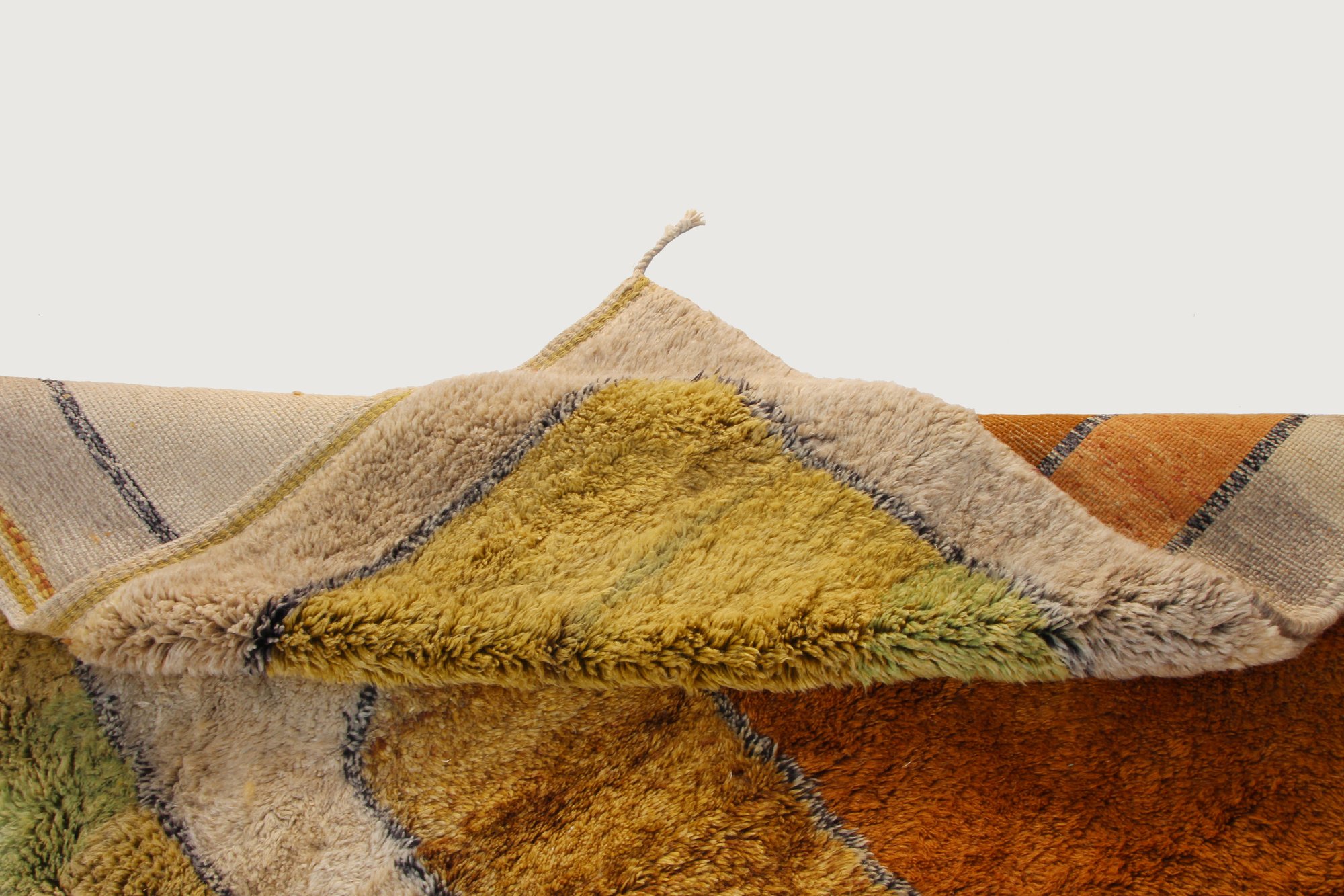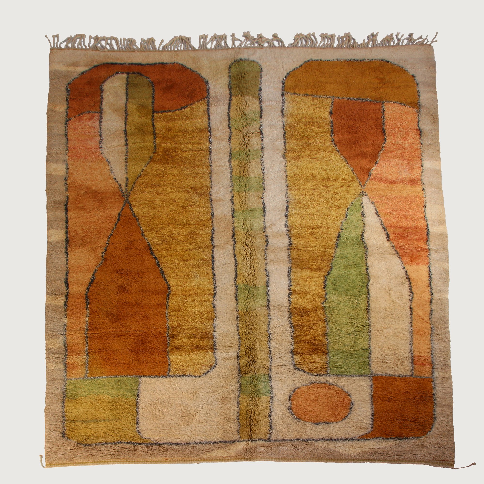 Handwoven in M’rirt in Morocco’s Middle Atlas Mountains, this bold Beni M’rirt rug features a striking abstract design with strong vertical forms and sculptural geometric shapes.