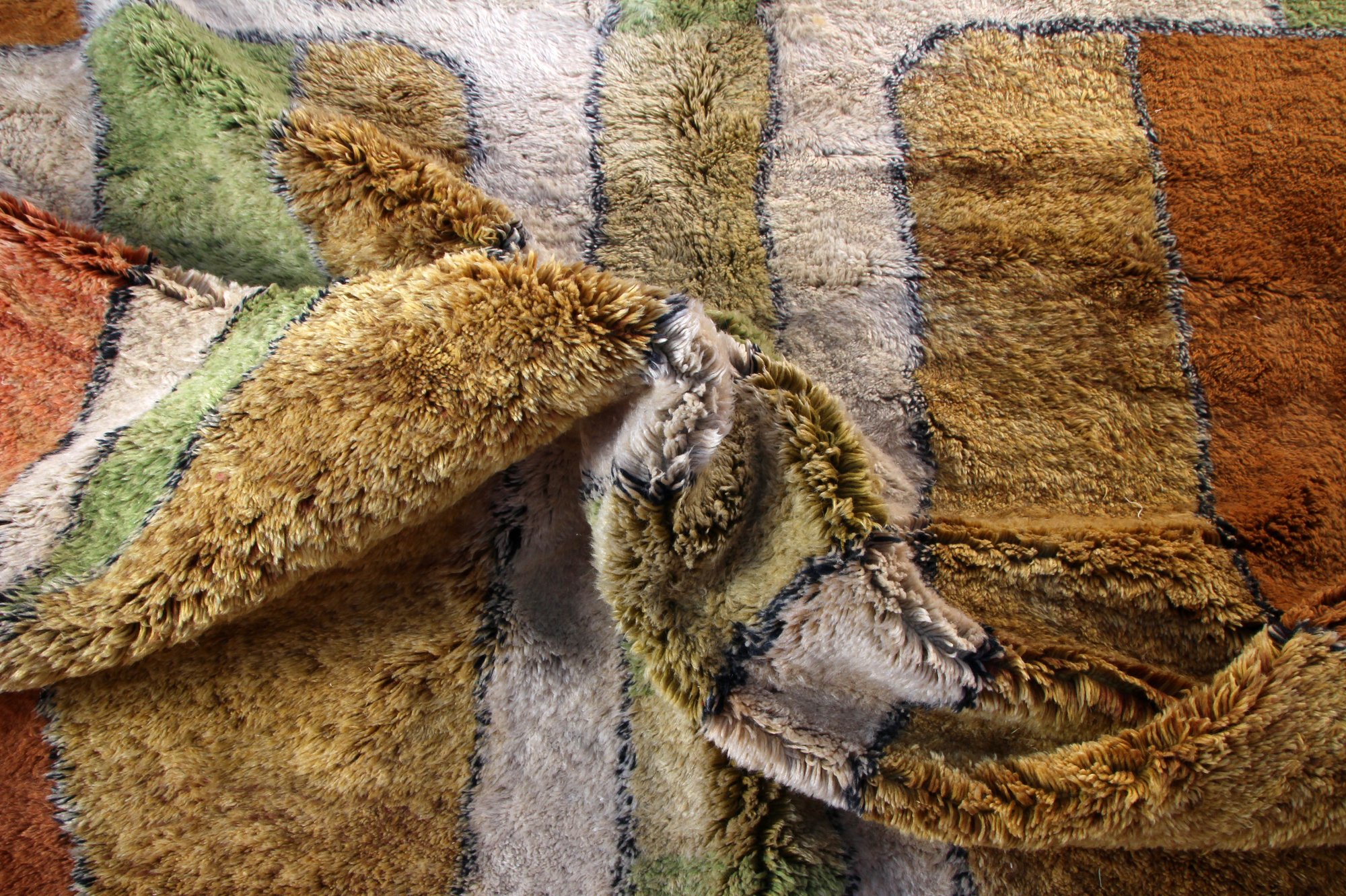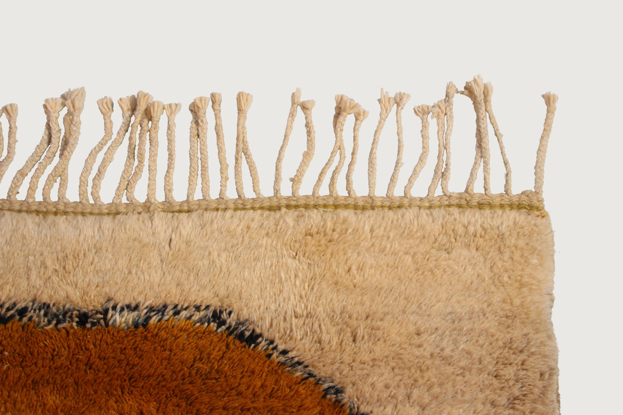 Crafted from 100% hand-spun natural wool, it offers exceptional density and a luxuriously plush feel underfoot. The rich contrasts and sculpted forms create depth and visual impact, ideal for design-focused interiors.