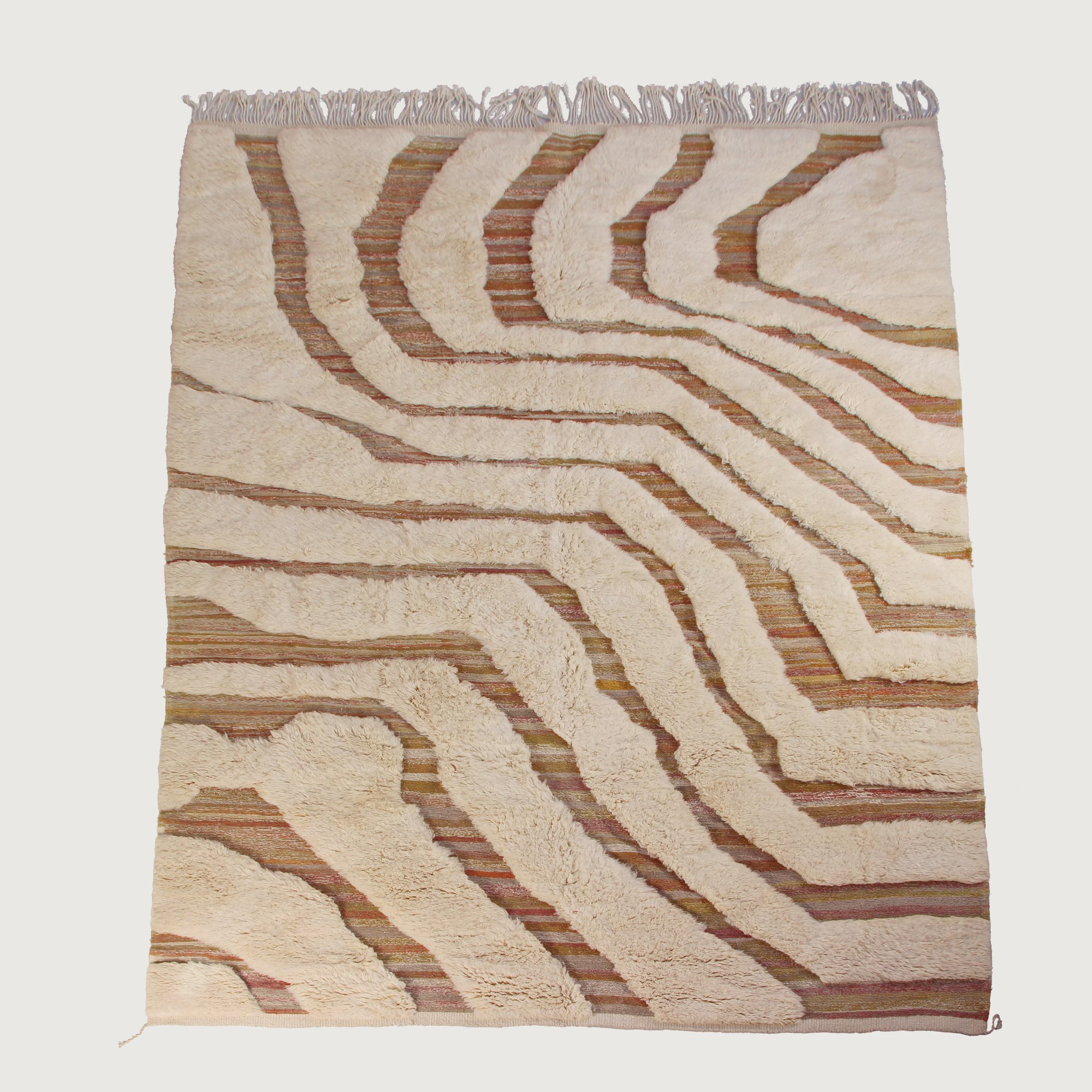 -Weave: Hand-knotted Beni M’rirt with sculpted pile and flatwoven accents