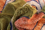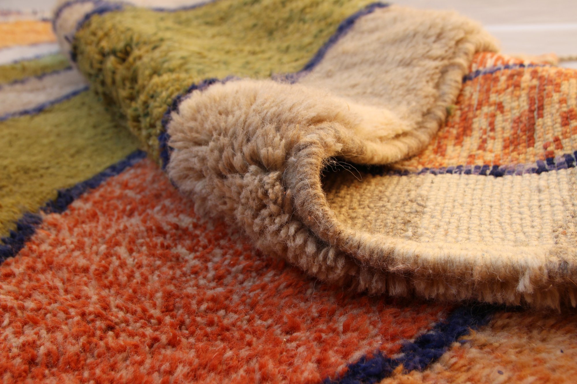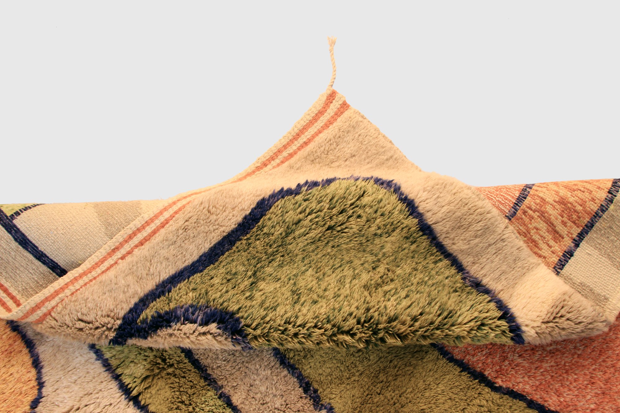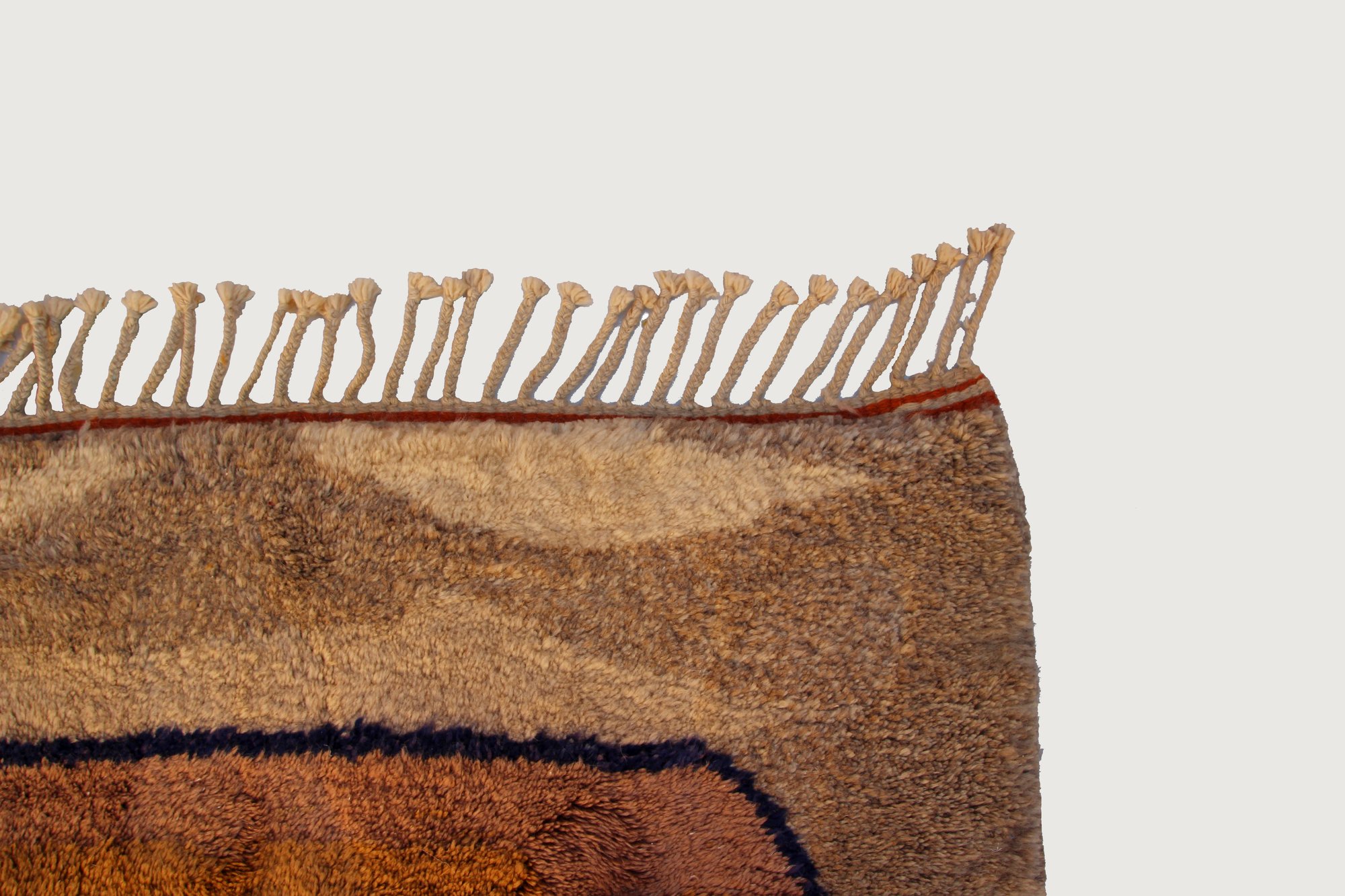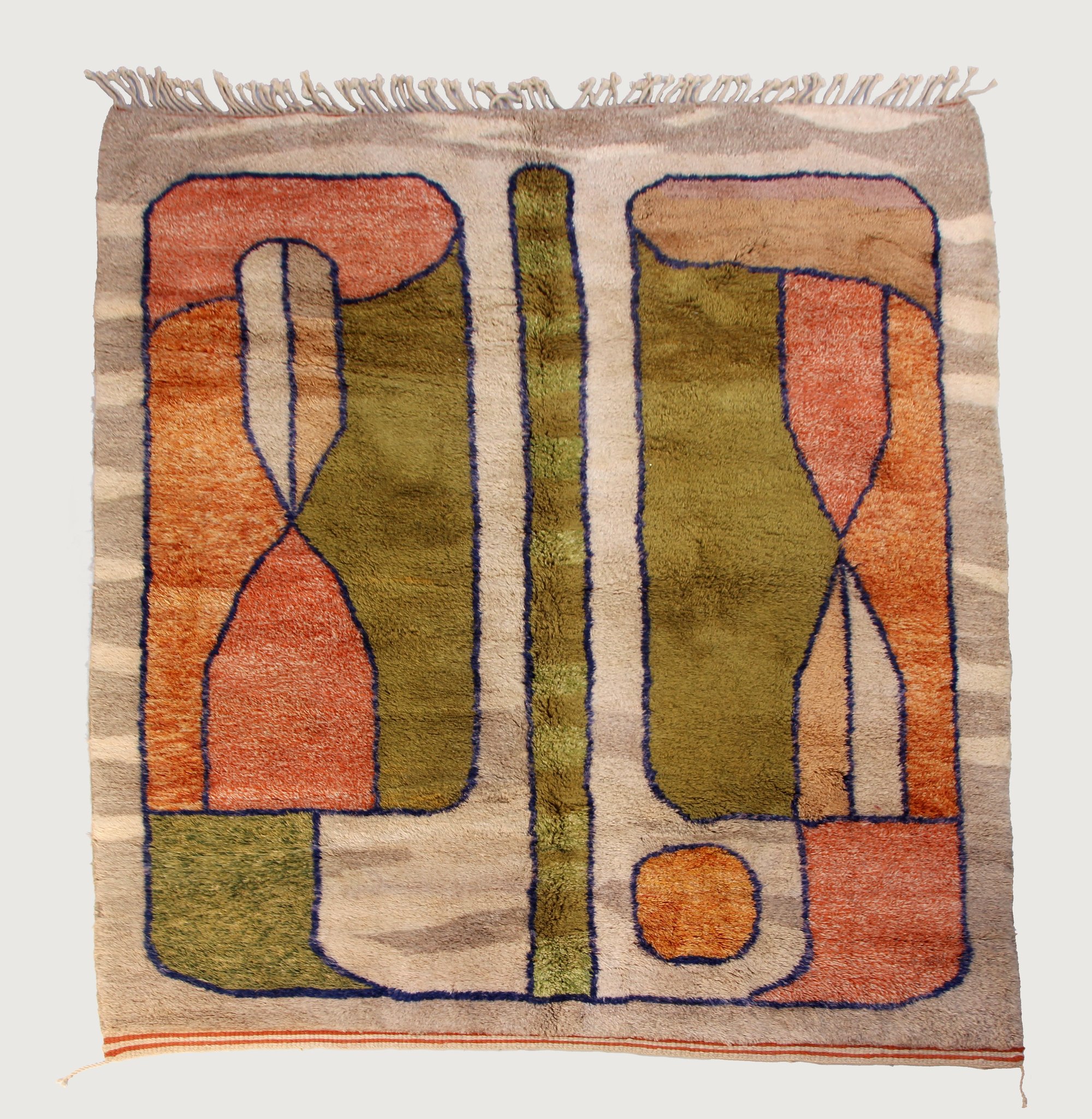Handwoven in M’rirt in Morocco’s Middle Atlas Mountains, this large-scale Beni M’rirt rug features a bold abstract design with strong vertical forms and sculptural geometric shapes.