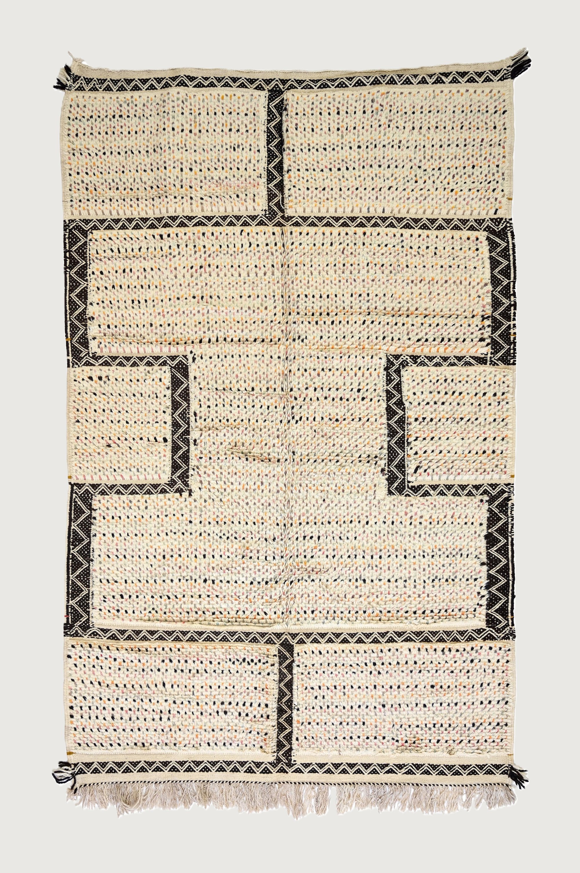Originating from Morocco's High Mountain Atlas region, this rug is a testament to the rich heritage of the Taznakht weaving tradition. Each rug is a unique, one-of-a-kind item, meticulously crafted by skilled artisans with generations of expertise. The wool used in Taznakht rugs is of unparalleled quality, with a lustrous sheen and elegant texture.