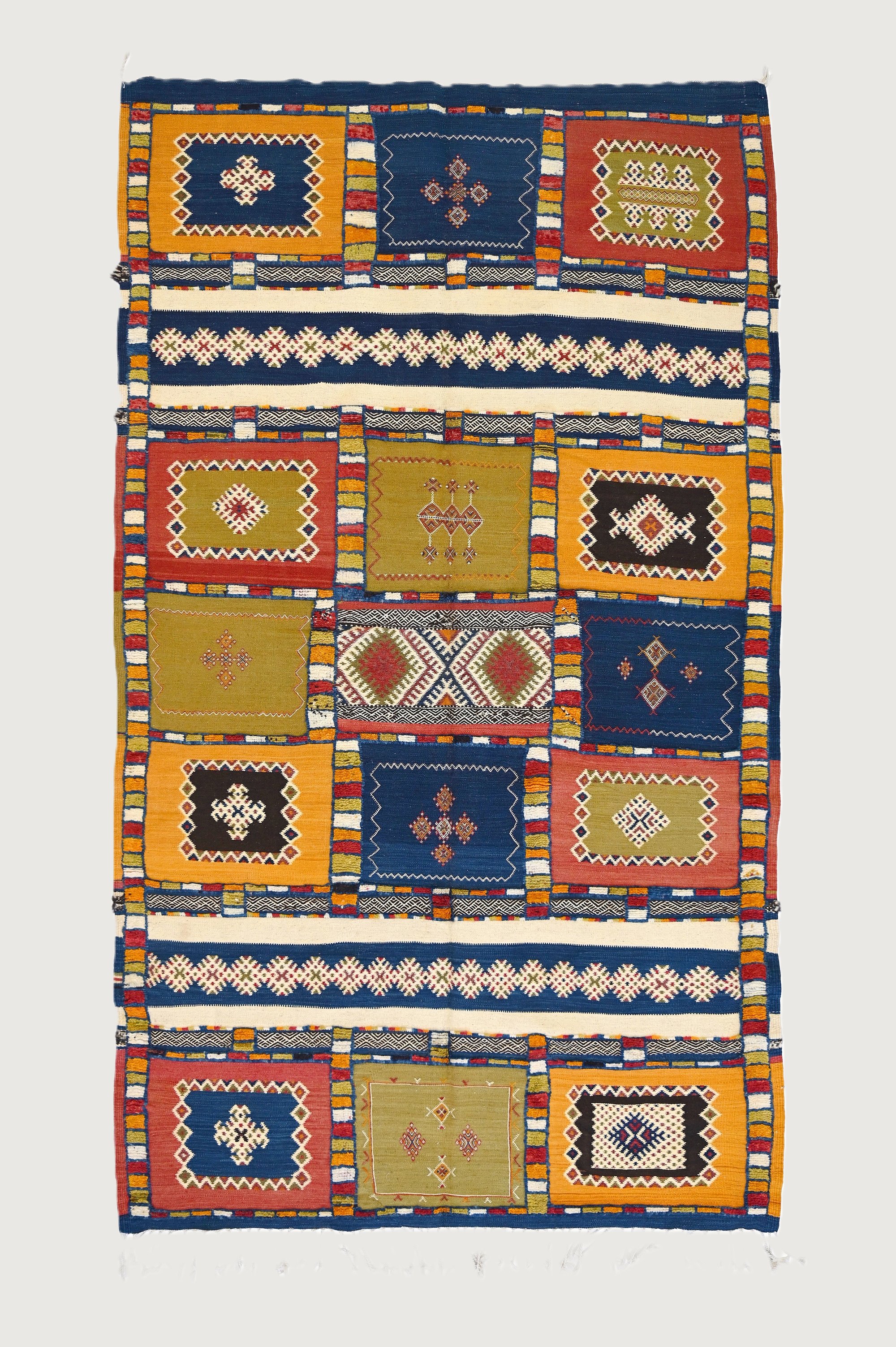 Step into the enchanting world of Moroccan craftsmanship with this extraordinary Taznakht Atlas Mountain rug. This artisanal masterpiece weaves together vibrant hues derived from natural dyes such as henna, pomegranate, madder, saffron, and alum into an intricate tapestry of history and culture.