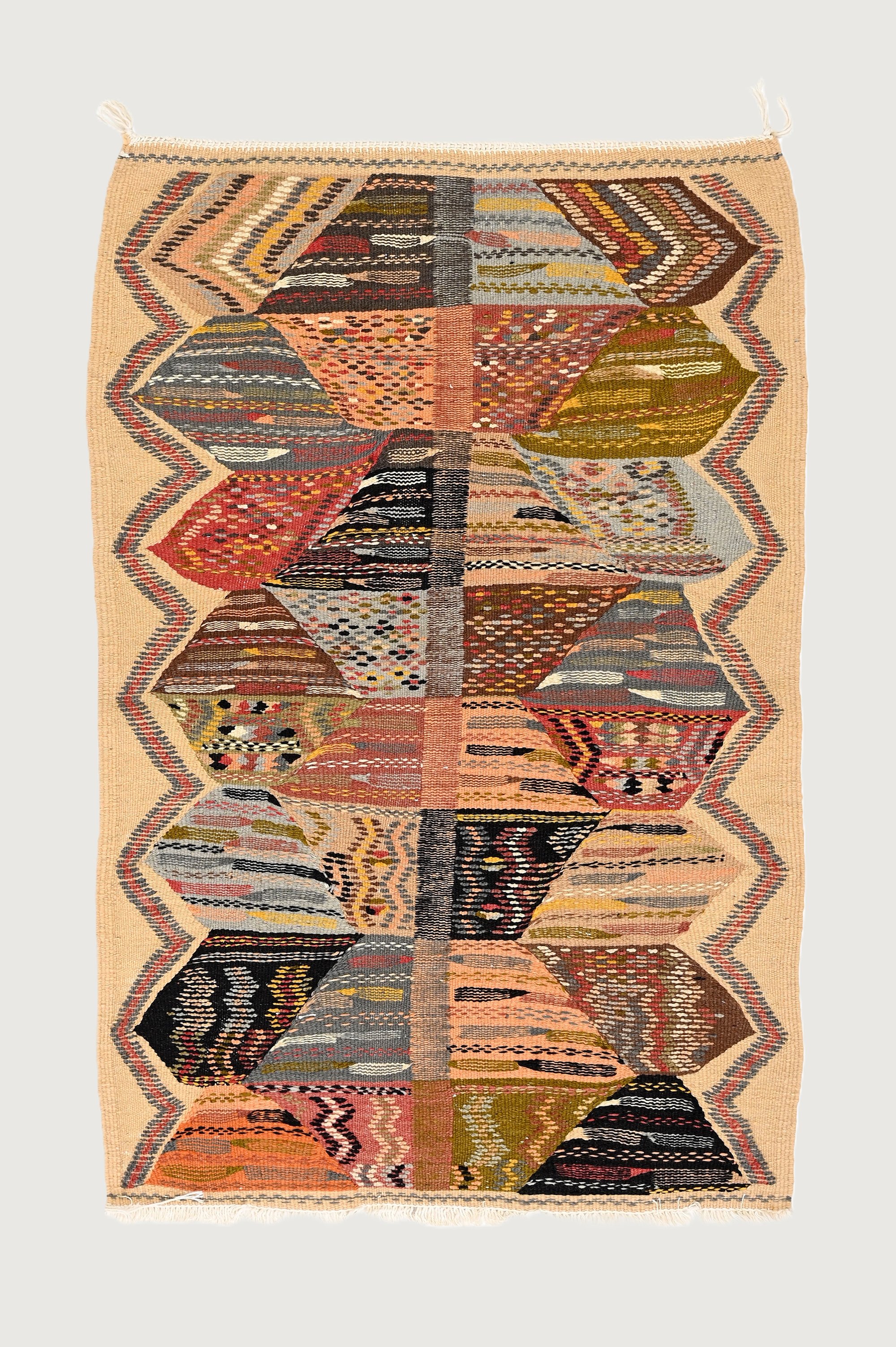 Natural dyes derived from plants give this rug its rich and authentic palette, while the craftsmanship ensures durability and softness. Each piece is a unique reflection of traditional weaving techniques.