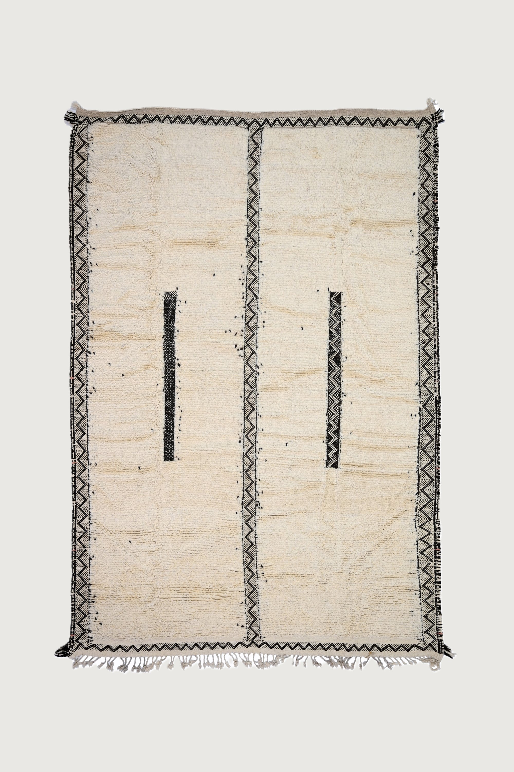 Add subtle elegance to your living space with the Berber Ivory Moroccan Rug. Its soft ivory background, enhanced with delicate black geometric lines, creates a refined and minimalist aesthetic.