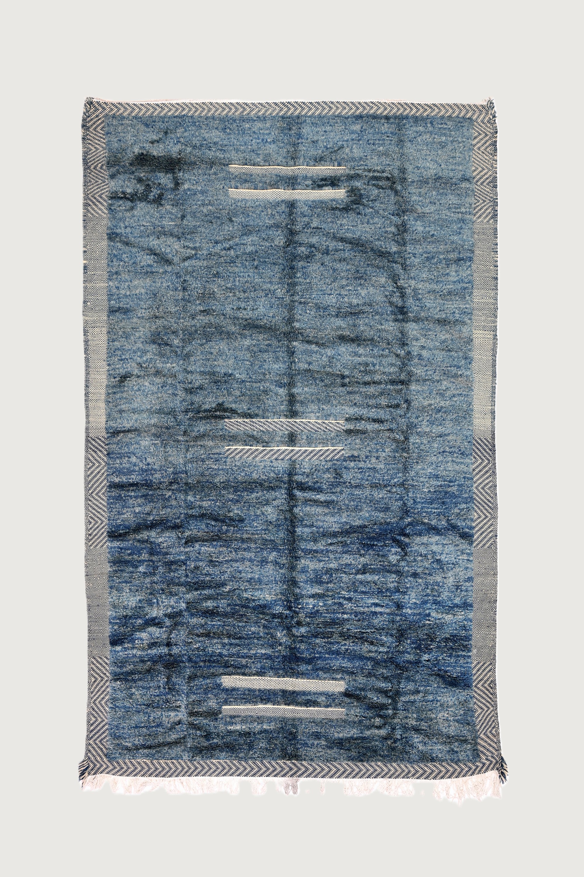 Experience the calming essence of Moroccan design with the Amazigh Blue Moroccan Rug. Its soothing blue tones evoke the tranquility of desert landscapes and open skies.