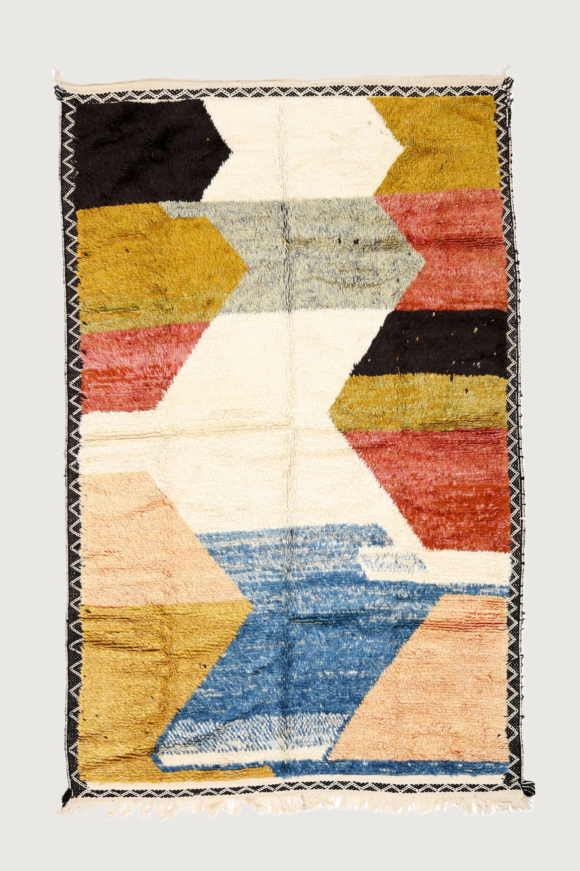 Handwoven from 100% natural wool, this rug reflects the perfect blend of traditional Moroccan craftsmanship and modern artistic expression. Each detail highlights the skill and creativity of the artisans behind it.